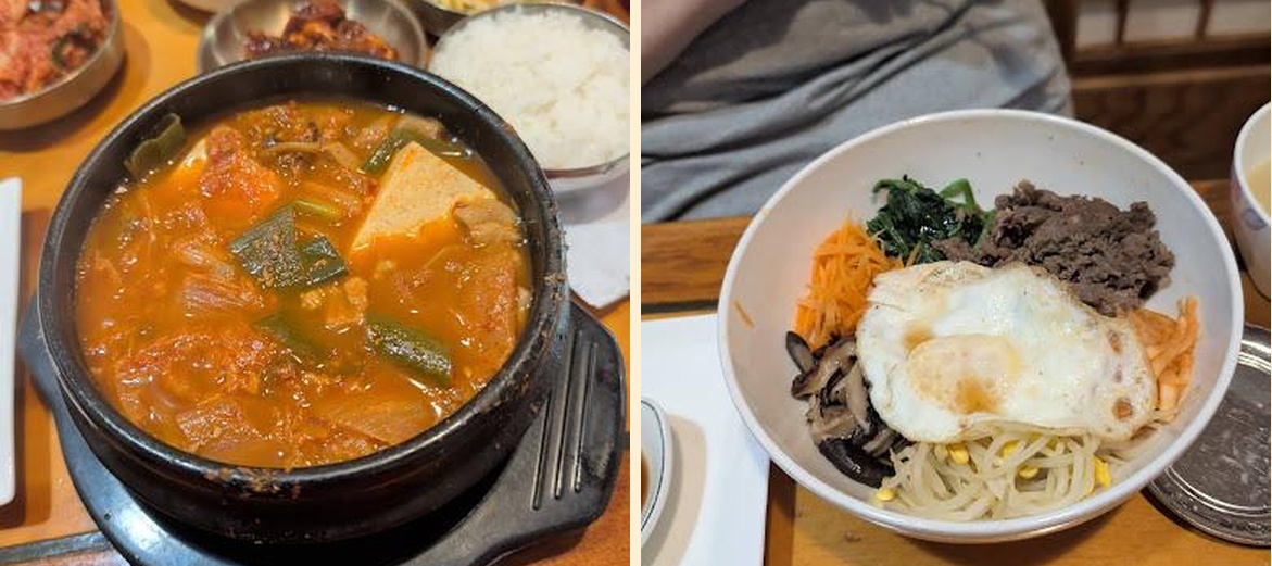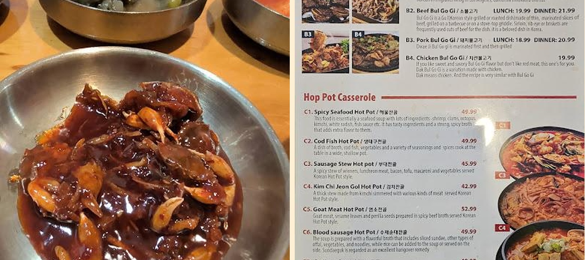 Popular dishes include Hot Stone Pot Bibimbap, Bulgogi Tukbaegi, and various grilled options. The Korean B.B.Q specials, like Grilled Fresh Short Ribs, receive high praise.
